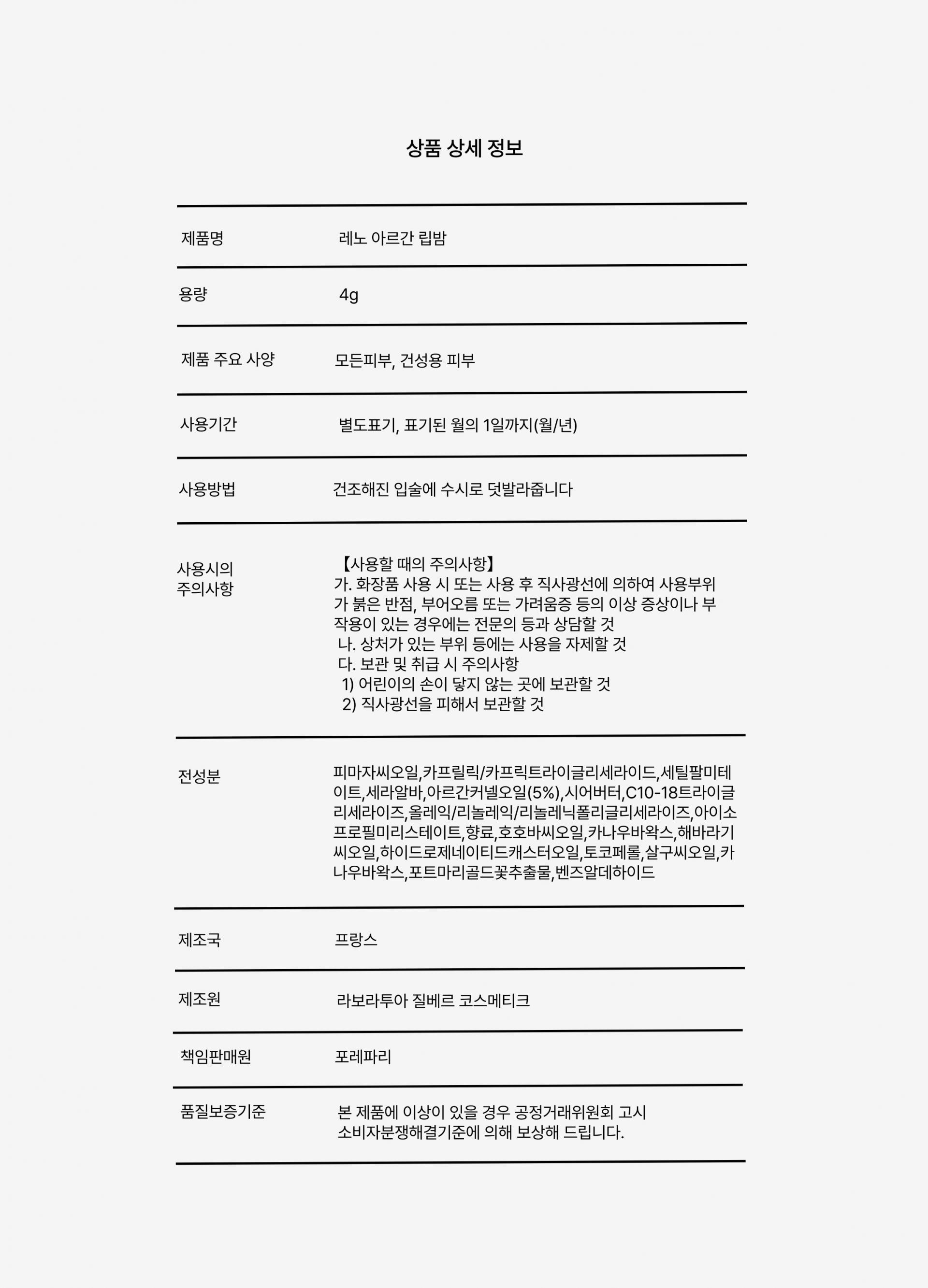 | 상품명 | 레노 아르간 립밤 4g |